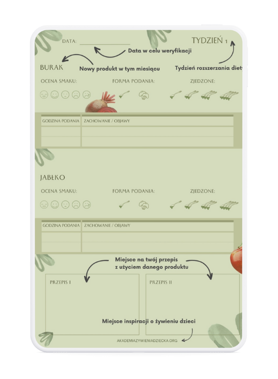 Fajnie, że wszystko jest w jednym miejscu. Harmonogramy, lista produktów, czego unikać – bardzo ułatwia sprawę. Plus za planner i dzienniczek, dobrze mieć to pod ręką.